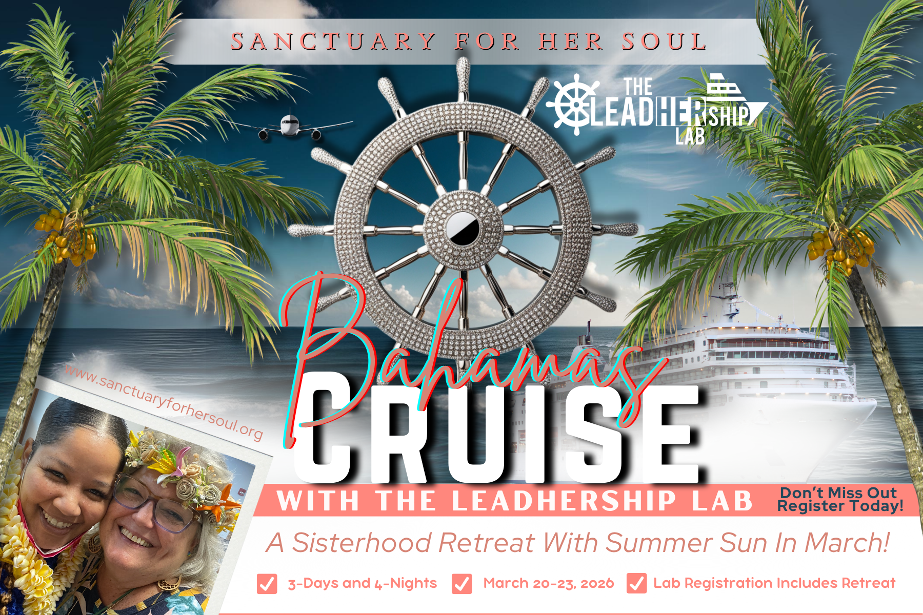 Weâll cruise to the Bahamas, porting in CocoCay and Nassau, departing from Fort Lauderdale. On board, youâll experience empowering sessions, shared meals, and meaningful conversations designed to strengthen your next chapter. Also, you will have time to have time to rest, explore and have fun!